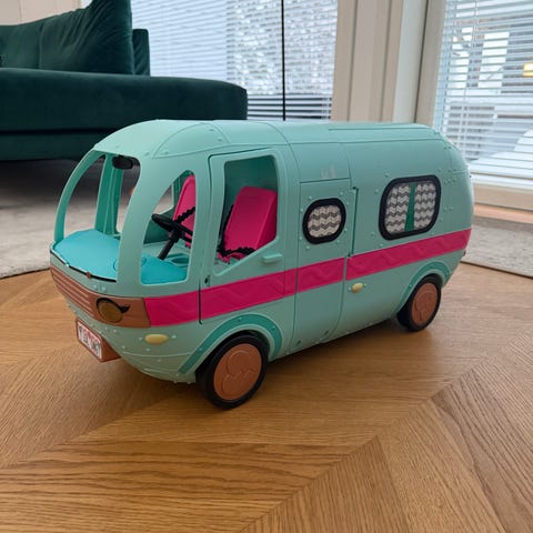 Tytär myy lol matkailuautonsa. Käytön jälkeä löytyy mutta hoitaa vielä hyvin asiansa. Uima-allas löytyy ja liukumäki. Valot ja töötti toimii. Kuvassa vähän linkussa mutta saa suoraksi.