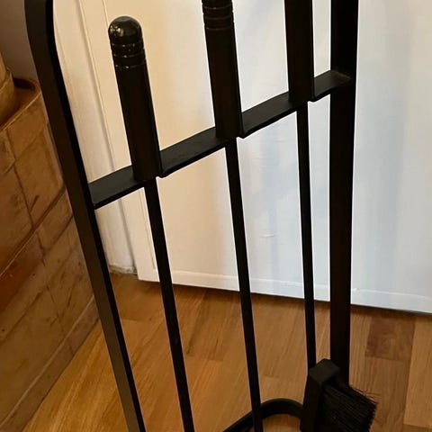 Hyvä takkasetti. Oikea sepän tekemä setti. Makkaratikut riittävän pitkät ettei sormet pala. Hp./ Järkevä tarjous vain nouto