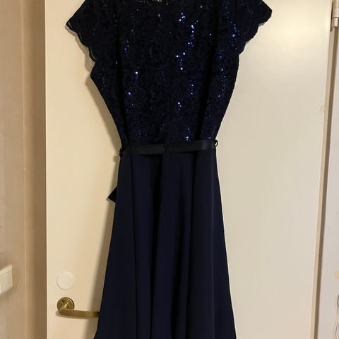 Pitkä tummansinien juhla/tanssijaismekko. Käytetty kerran Suomen itsenäisyyspäivän tansseihin. Koko 152.