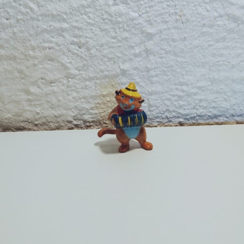 Disney figuuri, pituus 7 cm. Oikeassa jalkaterässä ja miekan kärjessä nirhaumaa.
