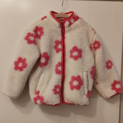 Myydään Zaran vaalea beige pörröinen takki, jonka hupussa on tupsu. Koko 104.