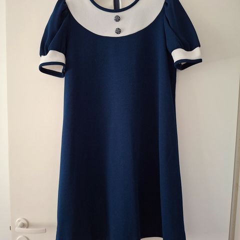 Upea a-linjainen neulemekko, mallista päätellen ehkä 60-70-luvulta. Takana käsintehdyt napit kruunaa kokonaisuuden.