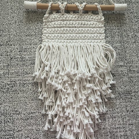 Korkeus kuvan mukaisesti ripustettuna 116cm, oksan leveys 65cm.