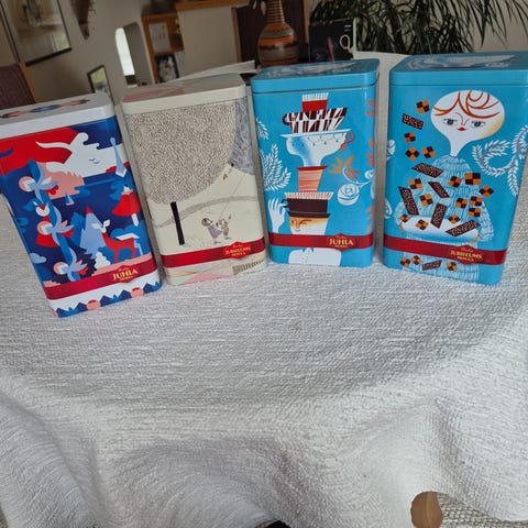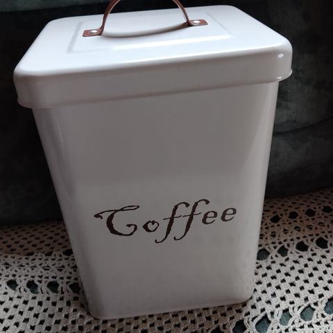 Käyttämätön peltinen säilytysastia. Pientä jälkeä ulkopuolella, kuvassa näkyvissä. Suodatinpusseja ei sisällä.