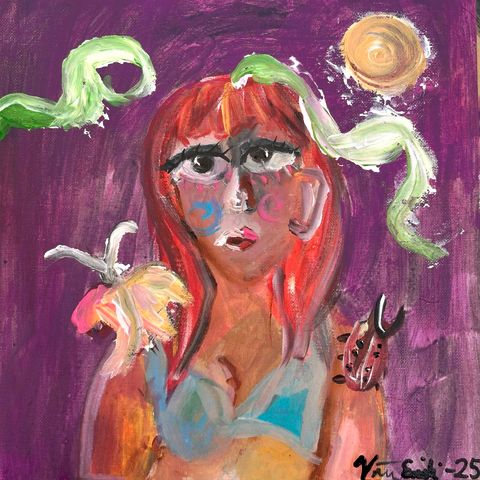 ”Spooky” halkaisijaltaan 40 cm akryylimaalaus