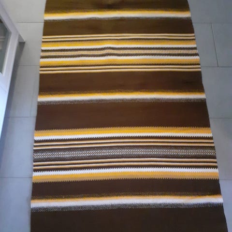 Myyn kangaspuilla käsinkudotun villalankaisen raanun. Raanun koko on 116 x 200 cm. Raanua voi käyttää peitteenä, seinällä, nojatuolin tai sohvan päällysteenä jne.