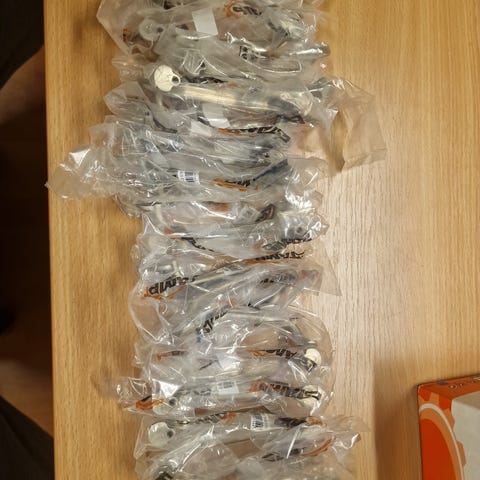 Myydään 8 kpl Jadon kaapinovien tai laatikoiden vetimiä, reikäväli 70 mm, niklattu messingin värisiksi, avaamattomissa vakuumipakkauksissa.