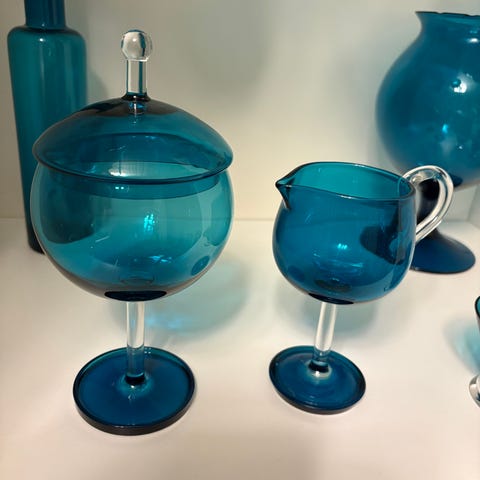 Myydään Nanny Stillin suunnittelema ja Riihimäen Lasin valmistama Harlekiini-kynttilänjalka. Pyörittäen puhallettu lasi, valmistettu 1964-1969. Korkeus 22 cm, halkaisija 7,5 cm. Signeeraus pohjassa. Erinomainen kunto.