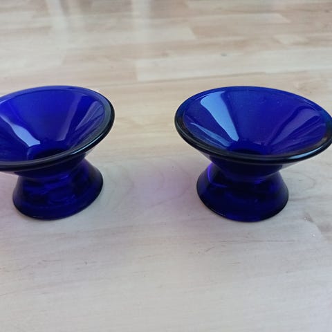 Kaj Franckin suunnittelemat kynttilänjalat. Väri sininen. Hinta 2 kappaleelle.