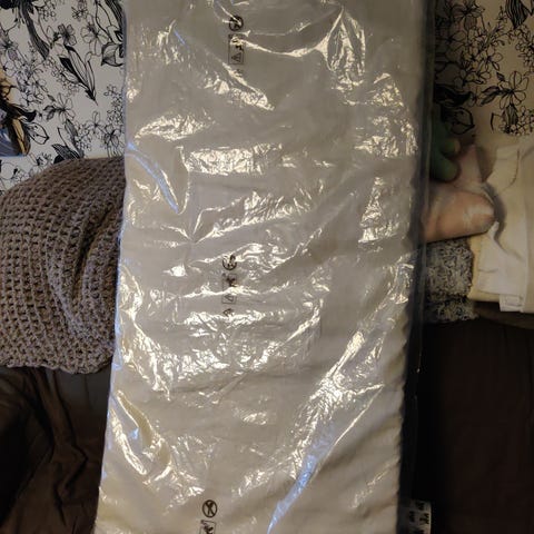 Patja solumuovia mitä lie. 2 liuskaa niin kun kuvassa ,patjansuojus (pussilakana) joka on vähän isompi. Ja onko tuo nyt sijauspatja päällä