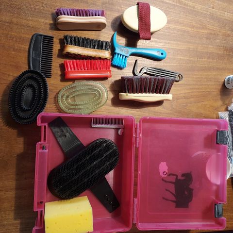 Kasa harjoja ja kaviokoukkuja, osa käyttämättömiä, joitakin puolestaan käytetty. Hevoselle tai miksei vaikka keppihevoselle tms