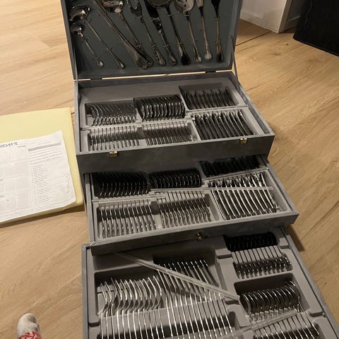 Muutaman kerran käytetty, aterimet tarkistettu ja virheettömiltö näyttävät. Postikulut kuuluu hintaan!