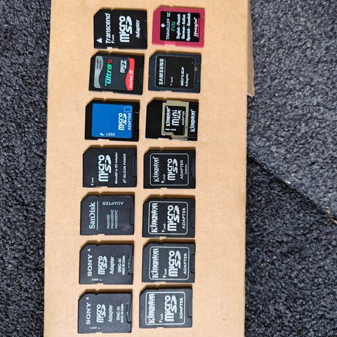 Uusi, tarpeeton meille. MikroSD-kortin saa tällä SD-kokoiseksi. Näitä löytyy 2kpl. Noudettavissa myös Nummelasta.