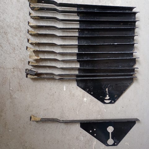 7 kpl metallikiinnikkeitä tarkoitettu kattotikkaiden kiinnitykseen.