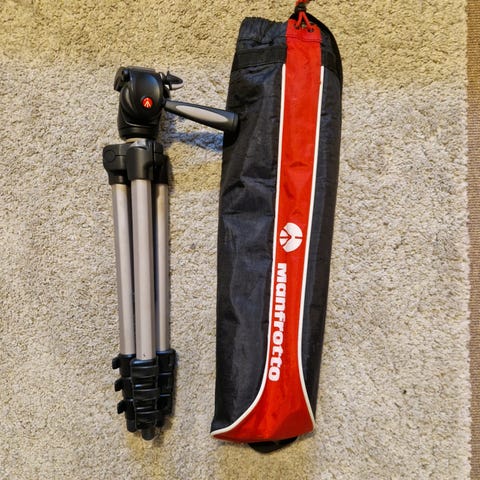 Manfrotto tripod + kinopää, vähän käytetty ja erinomaisessa kunnossa.
