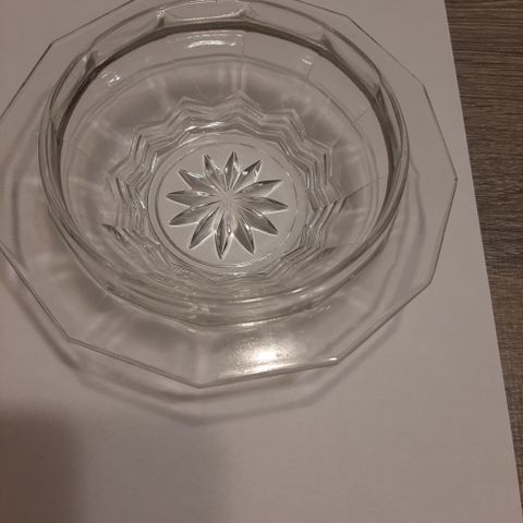 Harvinainen lasiastia, 10 cm halkaisija, 12 cm nurkasta nurkkaan korkeus 2 cm