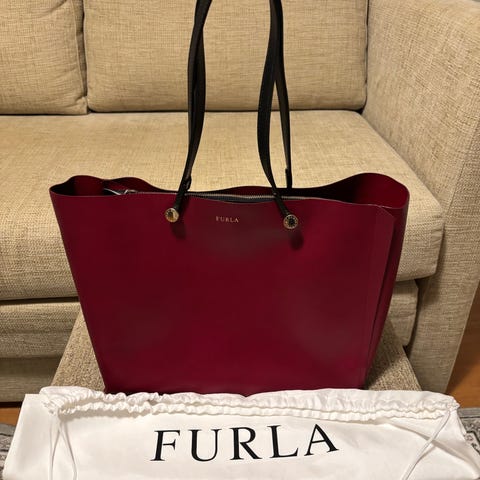 Myytävänä täysin käyttämätön Furlan musta nahkalaukku, alhaalta n. 26 cm, ylhäältä 32 cm, pohja 9 cm. Ovh 325€