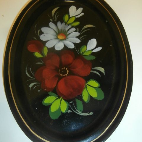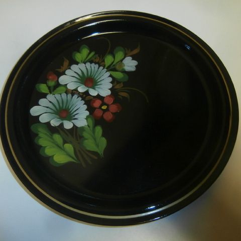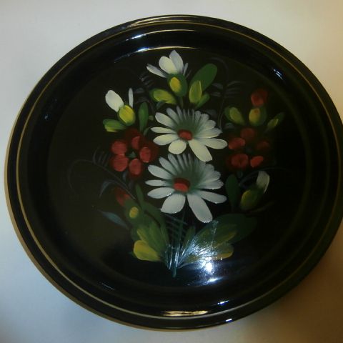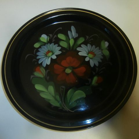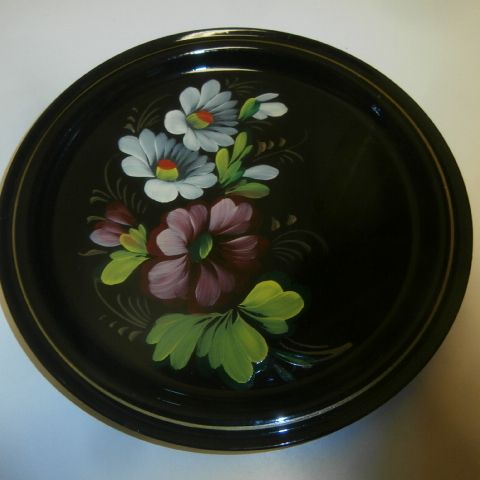 Metallilautanen 1. Kaunis käsinmaalattu lautanen