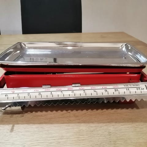Kuvan mukainen vanha jugend tyylinen vaaka, talousvaaka sisustukseen, toimivuudesta ei takeita ( viisari liikkuu) Korkeus 35 cm.