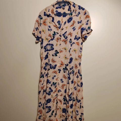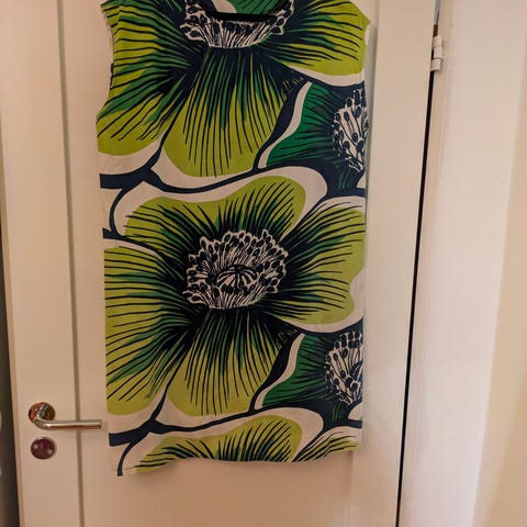 Kesäisen kaunis tunika. Mitat kainalo-kainalo 58 lantio 66 niskahelma 81. Hihansuun leveys 20. Materiaali 50% pellavaa 50% puuvillaa. Selässä hauska nappilista.Edessä tilaa antavat laskokset.Katso myös muut kohteet