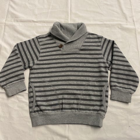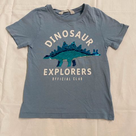 Sininen collegepaita, jossa jalkapallon kuvia. Koko 110/116 cm. Muutama nyppy selässä.