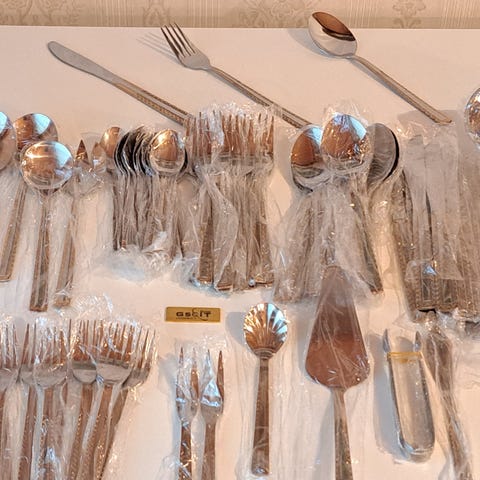 Haarukan pituus n.15cm ja veitsen 17cm.