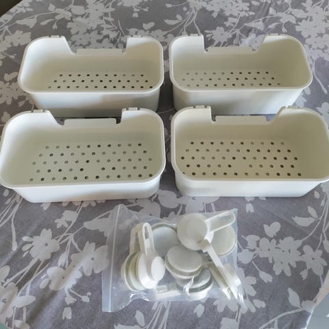 Käyttämättä jäänyt valkoinen pyyhetanko. Kiinnittyy imukupeilla. Pakkausta ei enää ole tallella.