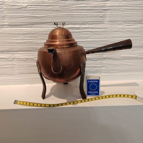 Vanha kahvipannu. Kuparia? Sisäpinta tinattu?
