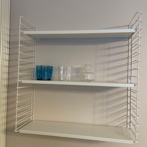 Kolme kappaletta Suomen Huonekalutehtaan valmistamia Lunu-seinähyllyjä! Sisältää seinän kiinnityskappaleet! Ei sisällä proppuja