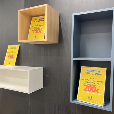 Tässä on tilaa ja säilytysmahdollisuuksia! Tämä Suomen Huonekalutehtaan valmistama Kuru-hylly on todella tukeva ja laadukas avohylly/kaapisto.
