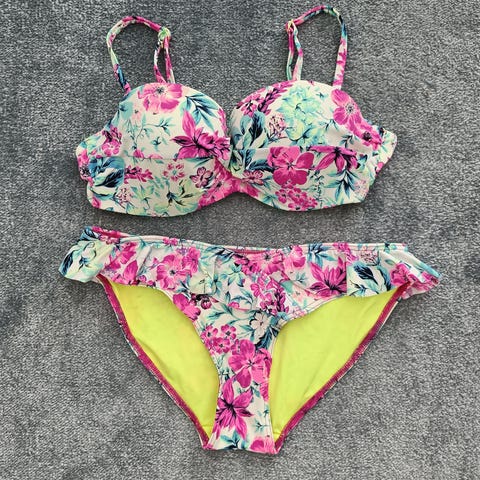 Geeli bikinit, uudet koko 38, kuppi B, ympärysmitta 75cm. Maksoi 49e, sain lahjaksi, ympärysmitta minulle pieni.