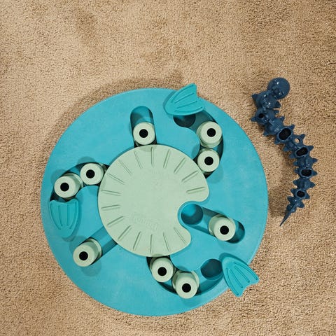 Kuvan puinen älypeli. Omalle koiralle liian helppo.
