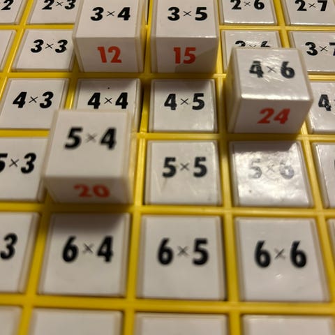 Myydään puinen kertotaululaatikko, jonka avulla opitaan laskemaan 1-81 välillä, 45 puulevyä, etupuolella kertolasku ja kääntöpuolella ratkaisu, kunto erinomainen. Nouto.