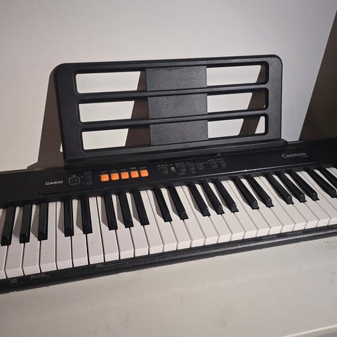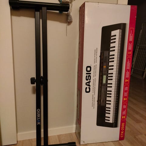 Hae tästä pukinkonttiin Casio CTK-571 kosketinsoitin jalustalla ja muuntajalla (nuottiteline puuttuu) 100€