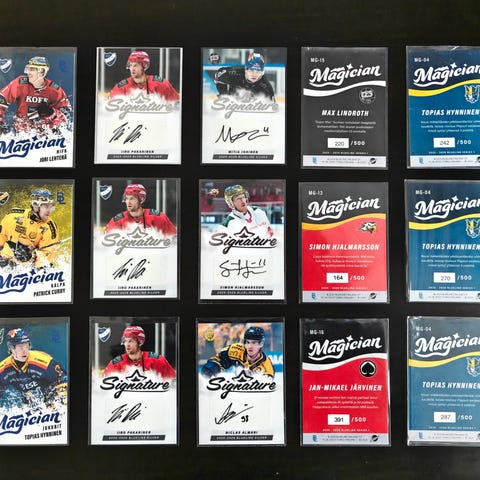 Myyntiin ja vaihtoon 2024-2025 liiga blueline keräilykortteja.