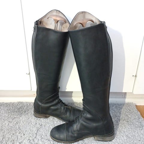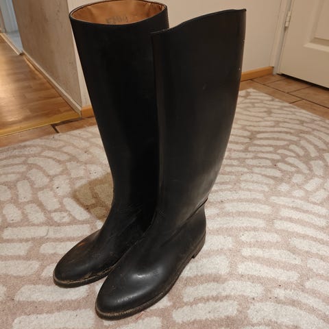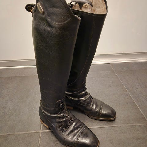 Nahkasaappaat kokoa 38-39. Kapeaan ja pitkään pohkeeseen. Pohjallisen pituus 24,5 cm. Saappaan korkeus 40/44,5 cm. Sovittaa voi Oulun keskustassa.