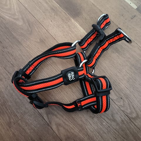 Lähes käyttämättömät turkoosinsiniset step-in valjaat heijastinnauhalla. Pienelle tai keskikokoiselle koiralle (koko S/M, vaikka valjaassa lukee XL). Voidaan kastella kylmässä vedessä, jolloin jäähdyttävä vaikutus. Valmistajan mukaan kaulanympärys noin 48-55cm ja vatsanympärys noin 52-58cm.