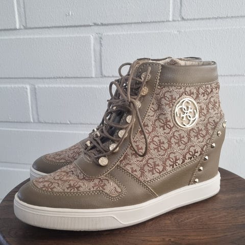 Myydään uudet ja käyttämättä jääneet Guess kiilakorko kengät. Koko 36. Kenkien pinnassa hopea hilettä väri: hopea musta. Postitus onnistuu, ostaja maksaa kulut.