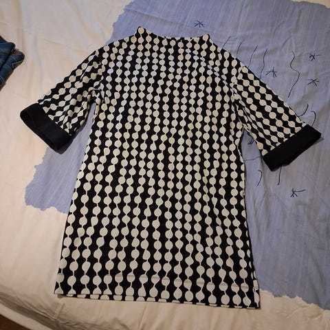 Finlaysonin optinen omena kuosilla pusero, koko S muta on melko väljä mitoitus, hyväkuntoinen. Kyynärtaipeisiiin ulottuvat hihat, mitat : kai-kai 52 cm, olkahelma 66 cm, mukavantuntuista materiaalia, kissatalous.