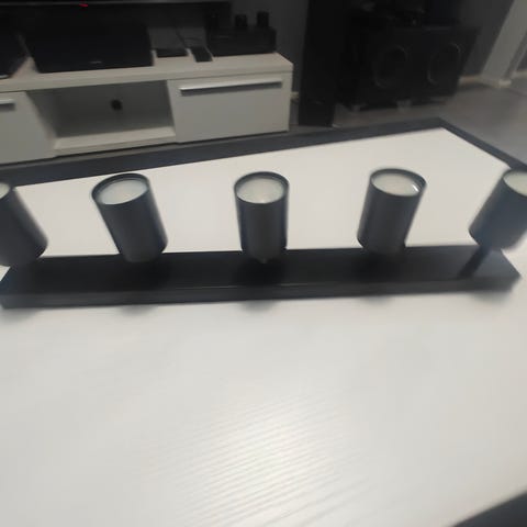 Anetan kolmiosainen kaareva kattospotti. Kunkin spotin asento säädettävissä. Mukaan 3x40 E14 R50 spottilamppua sekä kattoon tulevat ruuvit. Mitat: korkeus 18 cm, leveys 55 cm.