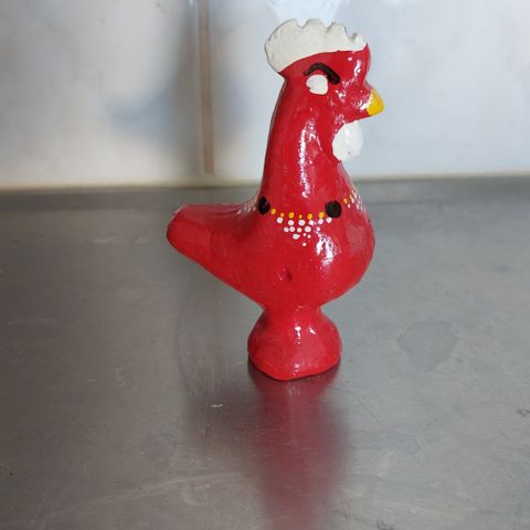 Myydään pieni kukkopilli, värit valkoinen, punainen ja vaaleanvihreä. Korkeus 9,5 cm.