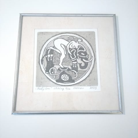 Uudenveroinen kehystetty Vitali Sobolev etsaus ”Musiciant”, Concert for Animals 4/45 vuodelta 1998.