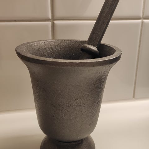 Hyväkuntoinen ja vähän käytetty mortteli, materiaali messinki. Tilavuus 1,5 dl. Oulu, Kaakkuri. Käteismaksu ja nouto.