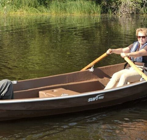 yksinkin moottorilla ajettaessa. Veneessä on kaksi lukittavaa säilytystilaa ja moottorilla ajoa helpottava moottorikaivo. Verkkokalastajia varten on alumiininen reunalista. Tämä soutuvene on suunniteltu myös sähköperämoottorin käyttö huomioon ottaen. Lyhytrikiselle moottorille.