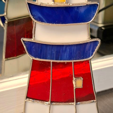Vintage Tiffany majakka tuikkulyhty. Pieni särö punaisessa lasissa, näkyy viimeisessä kuvassa, muutoin ehjä.