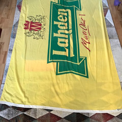 Amsterdamista Heineken olutpanimosta noin 40 vuotta sitten ostettu lippu, jonka voi ripustaa tavalliseen lipputankoon tai äijäluolan seinälle. Koko: 150 x 93 cm.