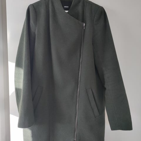Myydään muutamia kertoja päällä ollut villakangastakki. Rento malli.