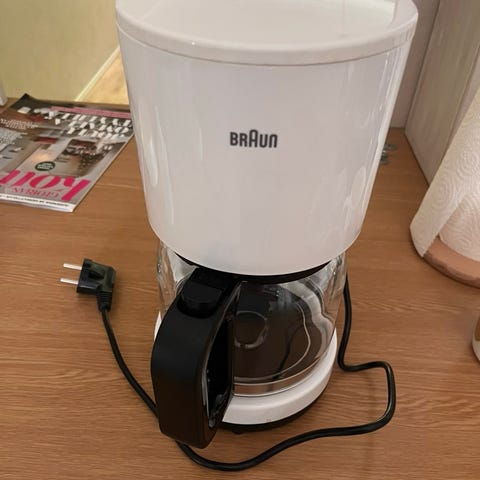 Kuvan kahvinkeitin.8 isoa kuppia tai 12 pientä.Keittää erittäin kuuman kahvin👍Toimii moitteettomasti.