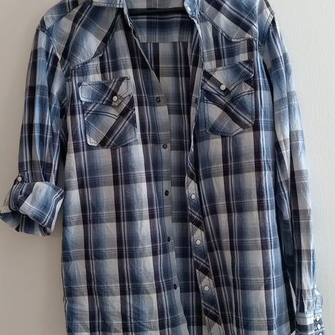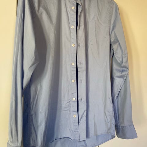 Vaalean farkun värinen kauluspaita. Lyhyt hihainen.