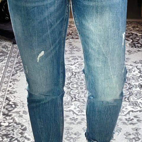 Uudet ja käyttämättömät temusta tilatut farkut. Koko S, korkeavyötäröiset.